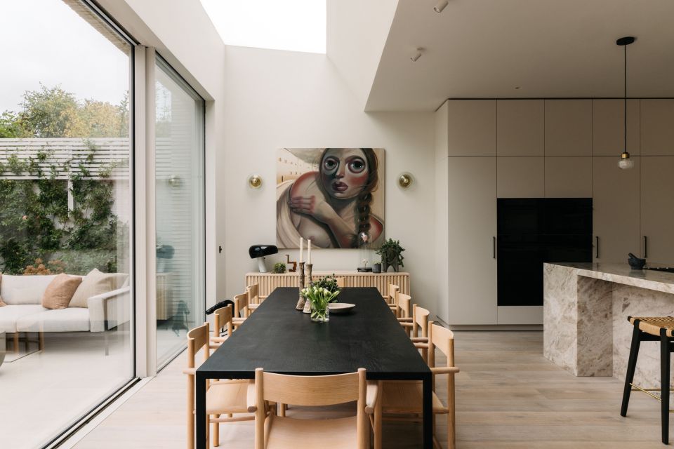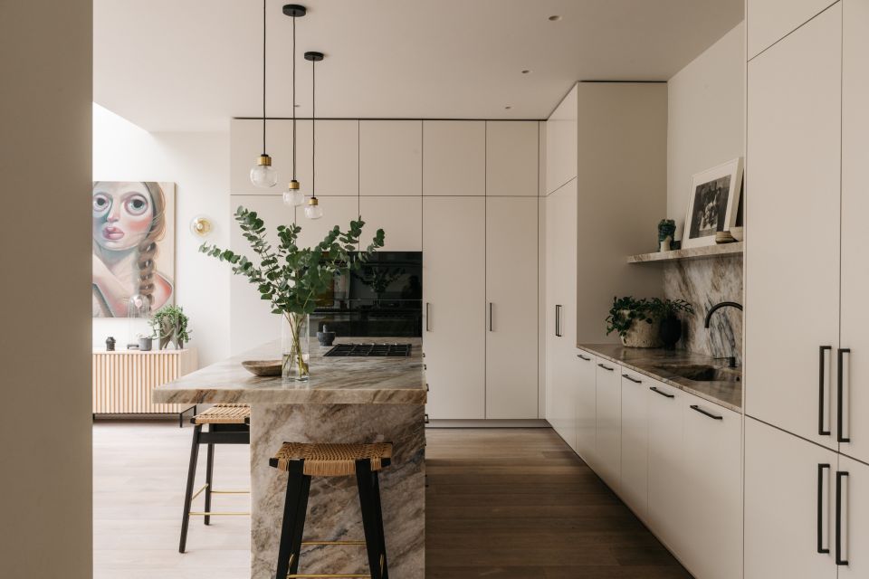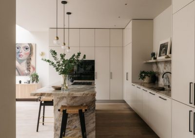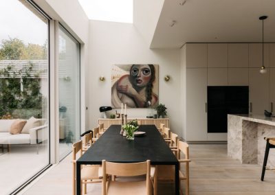 One of key parts of this renovation was transforming the former small, dark kitchen into a bright, sociable space with a new L-shaped layout and a chic stone island. Careful planning, precise structural preparation, and quality workmanship ensured a durable and high-end finish. Gentle, neutral tones were used throughout the home to create a cohesive, modern look while keeping the space warm and inviting.